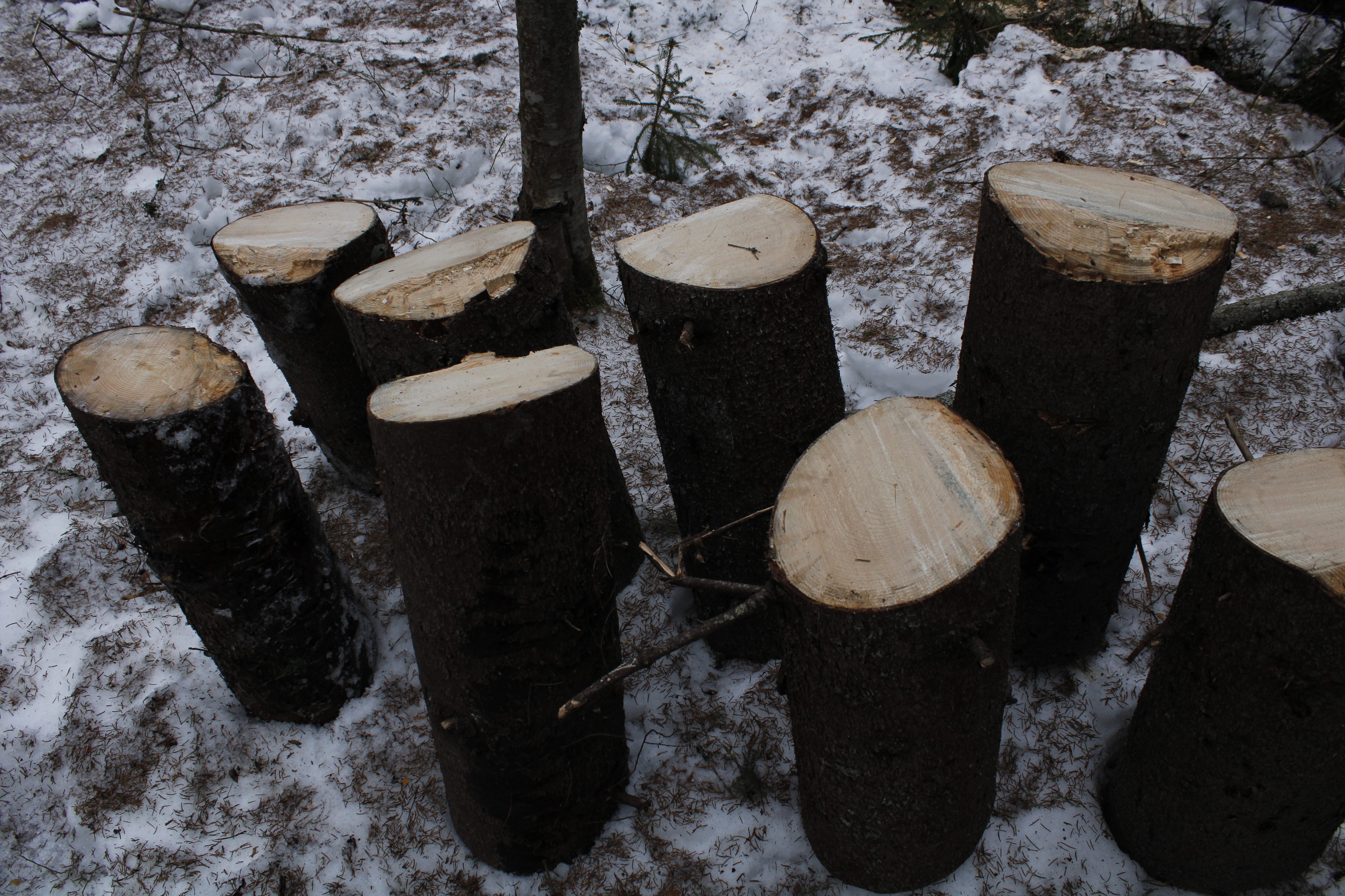 L’installazione “Il cuore della foresta” riflette questi concetti solo in apparenza astratti. L’opera è stata realizzata nell’arco di tre mesi tra Marzo e Giugno 2019 durante i quali l’attenzione si è rivolta alla transizione, nella forma del passaggio dall’Inverno alla Primavera. Giorno dopo giorno, in un susseguirsi di momenti avvolti nel profondo silenzio della foresta d’Inverno ho camminato fino ad imbattermi in giganti caduti. Grandi alberi di abete, lunghi fino a 30 metri, si trovavano al suolo sradicati da una tormenta. Ho cominciato a dividerli in sezioni lunghe 60cm con strumenti manuali.